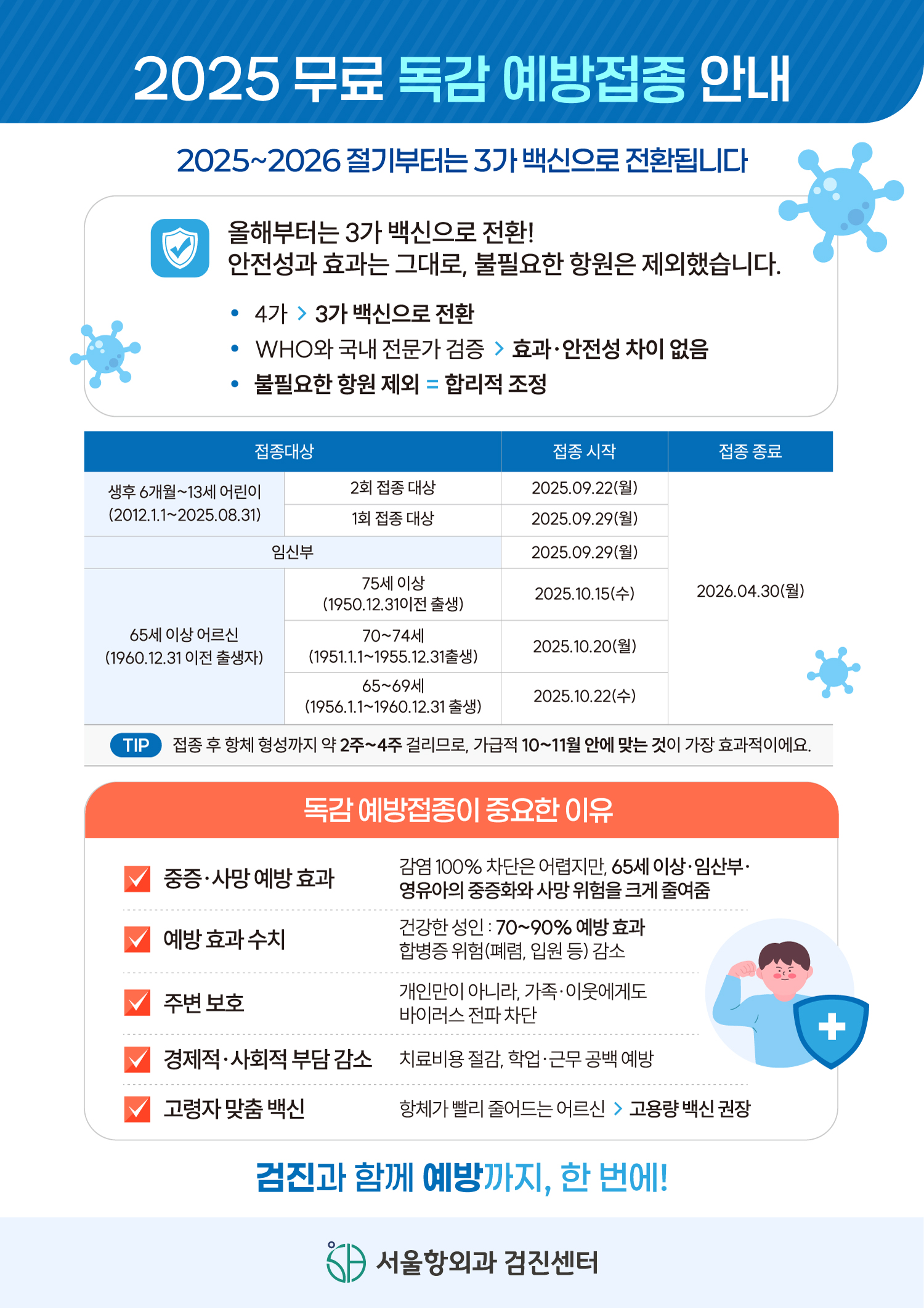 무료 독감 예방접종을 실시합니다.
